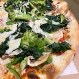 Green peppers, spinach, broccoli, onions and mushrooms smothered with mozzarella cheese.